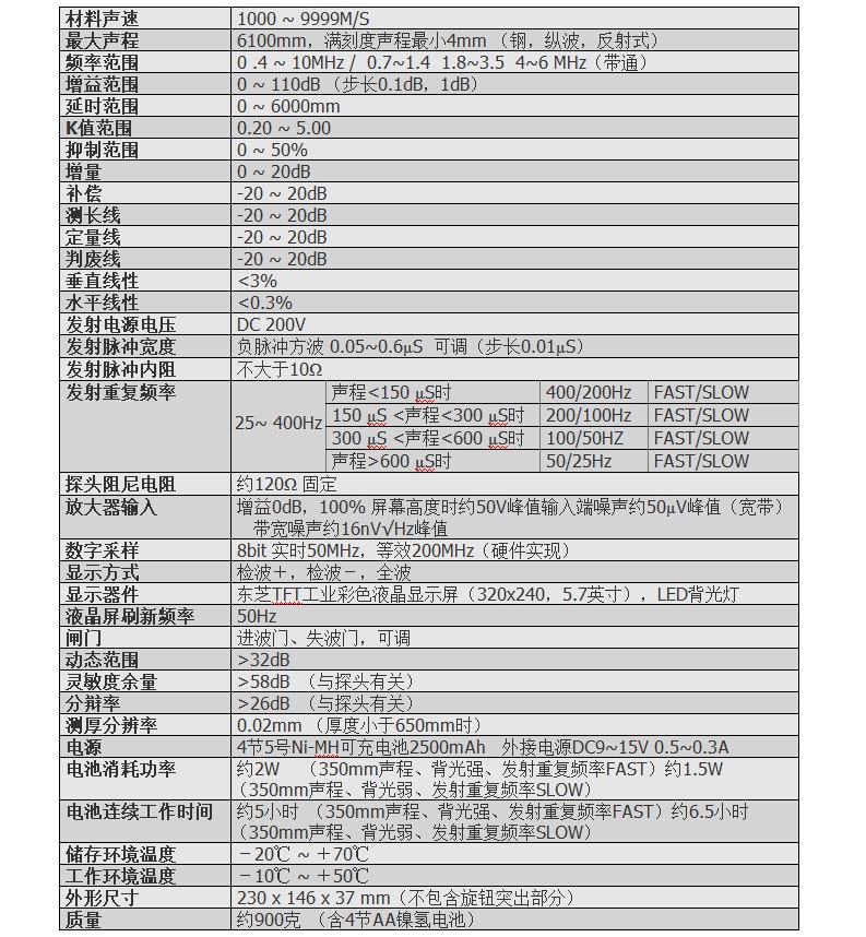 wut700超聲波探傷儀的所有技術指標,已達到同類產品的平均水平,在抗干擾能力上,表現尤其突出,我們盡力完善儀器性能,絕不搞虛假指標,例如靈敏度余量這個重要指標,我們是用寬帶測試,并標明阻尼電阻為120歐,如改用帶通,性能會提高約5dB,如阻尼電阻為200歐,又可改善約4dB,由于我們實事求是地列出測試條件,請用戶放心使用。