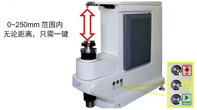 注釋:“一鍵測量”:不論工件大小、所處位置、離壓頭遠近,只需一鍵,實現工件自動升降、主動接近壓頭、自動到位、完成測量全過程。特別適合工業化批量零件的測試。
