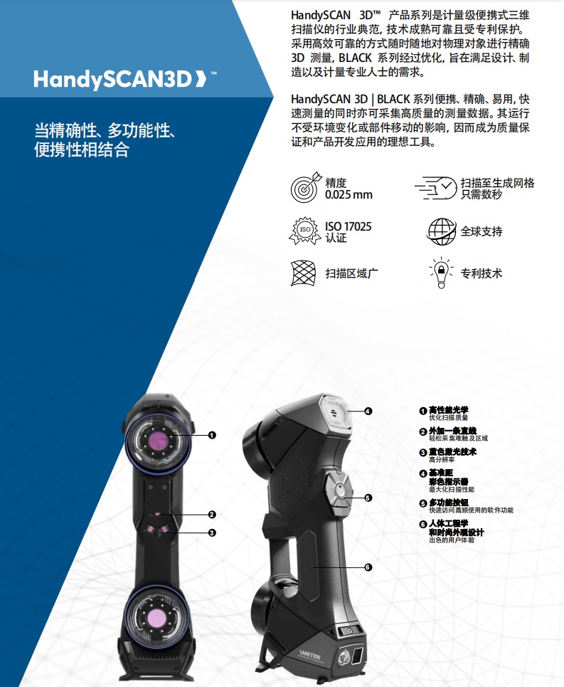 Creaform 3D掃描儀HandySCAN BLACK 精確性、多功能性、便攜性相結合