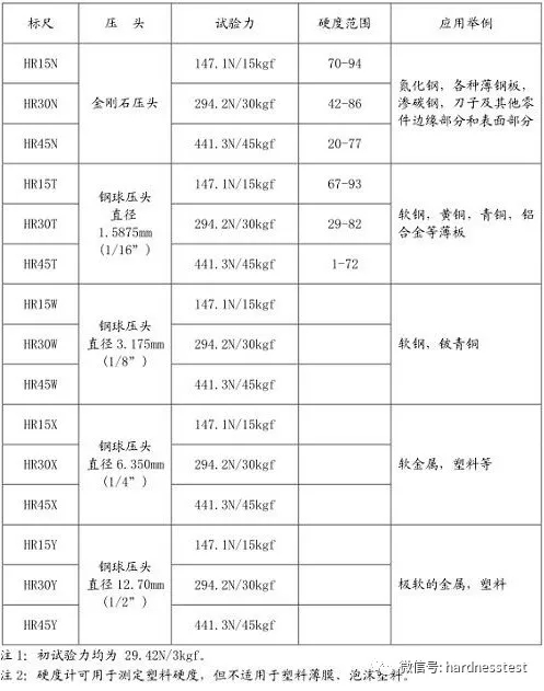 洛氏硬度標尺、壓頭、試驗力、材料的選擇