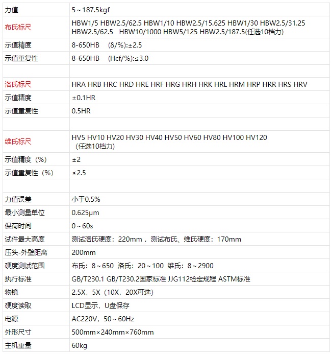 ·具備布氏硬度計、洛氏硬度計、維氏硬度計三種試驗方法;