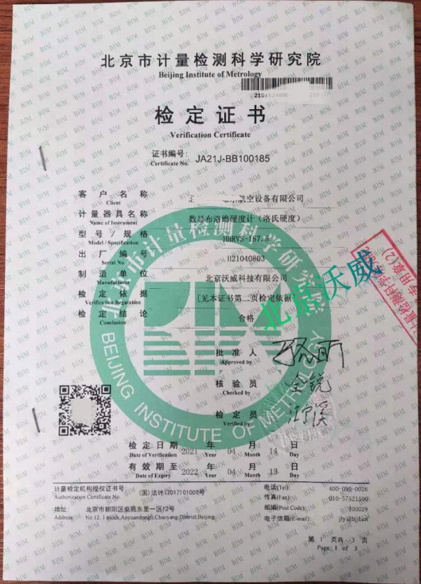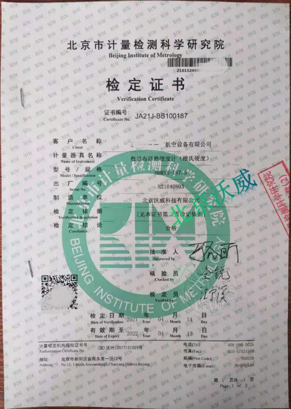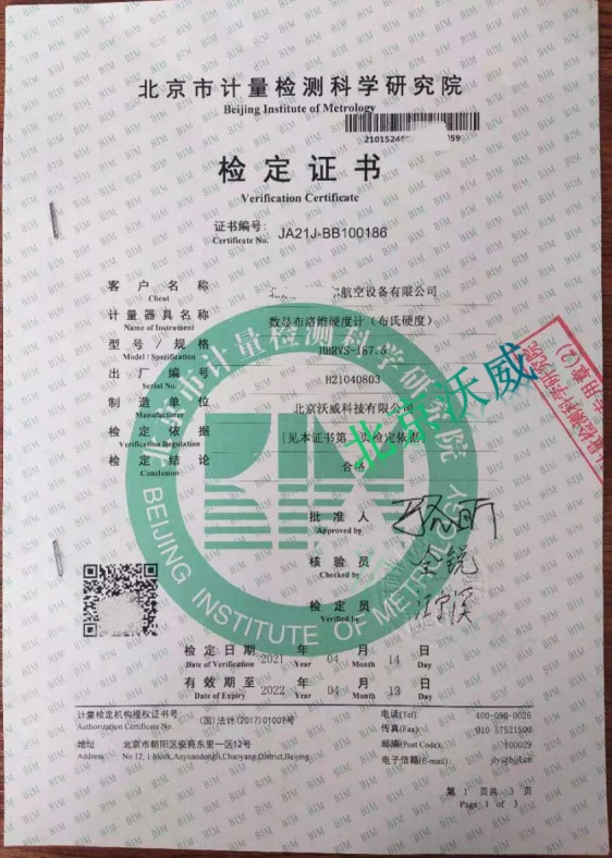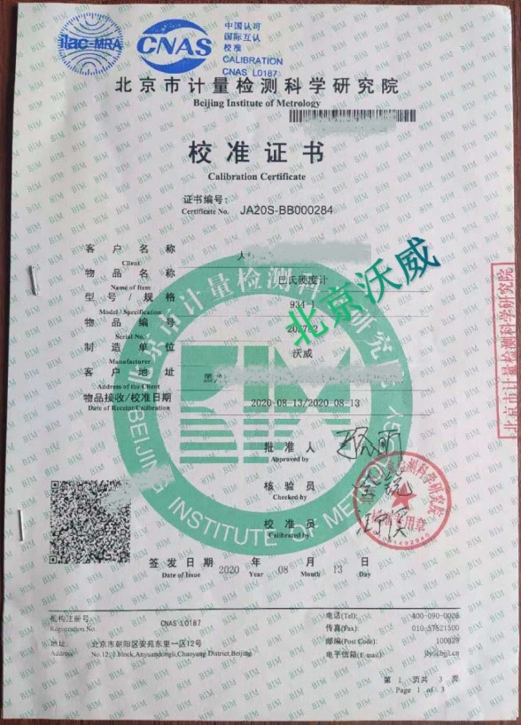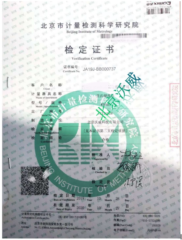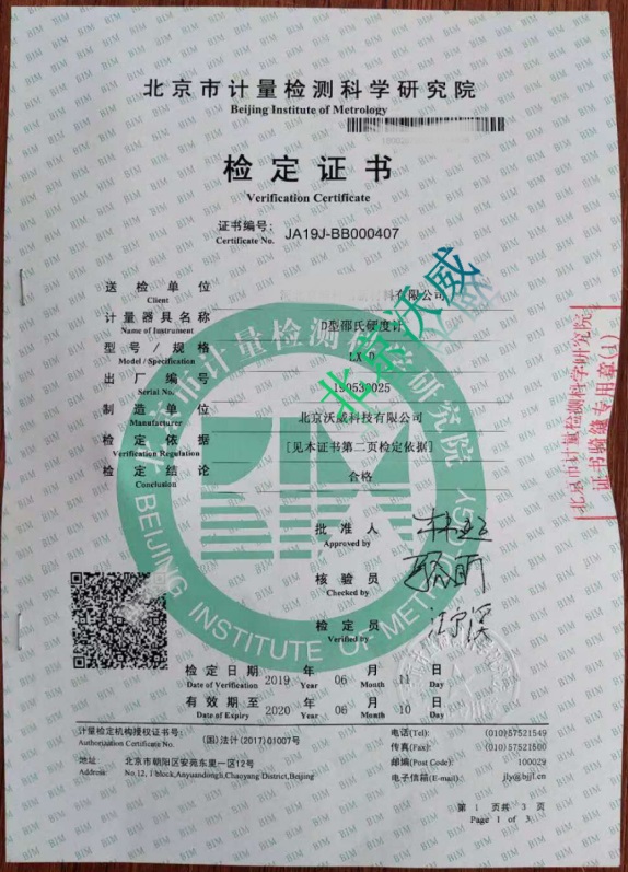 巴氏硬度計(jì)計(jì)量檢定證書(shū)